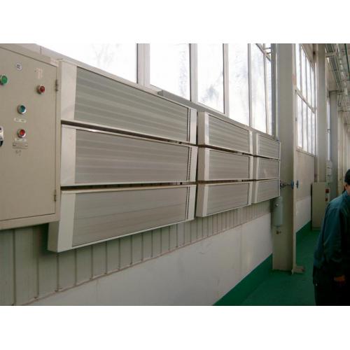 http://www.saidekeji.com/设备有哪些: 1.锅炉供暖系统: 由单独的锅炉房,管道,散热片等组成,通过燃烧煤(天燃气或油)等,加热水,经过能量的二次转换,水中的热量通过管道到达每个散热片。 舒适性好。需要前期铺设管道,及专门持证锅炉人员管理。加热时间长,不可以区域定向加热,厂房空间大,不易恒温保暖。不能单独控温,需要24小时不熄火,灵活性差,能量浪费严重。 2.工业暖风机: 主要由空气加热器和风机组成,空气加热器散热,然后风机送出,使室内空气温度得以调节。优点是可移动性比较强,但是噪音大,燃油污染环境,吹暖风扬尘大,空气干燥。一般 暖风机 都是放在地面,暖风口都是一个方向,不能全方位空间覆盖散热。 3.热风炉: 热风炉主体、烟囱、风机、电控测温设备、进风管道、回风管道、换气装置等组成,它的原理也是通过加热空气后传导给人体或是周边物体,通过对流加热的方式先让高大车间的上方加热最后使整个车间加热,加热时间长,热能利用率只有50%。需要前期铺设管道,管道都是横竖在车间内,占用车间空间,由热风炉产生的热风通过管道输入需要加温的空间,空气干燥,而且特别容易扬尘,需要燃煤或其它燃料,需要专门的人员管理。 4.红外辐射采暖器: 专为高大空间的厂房、车间量身定做的红外线辐射取暖设备,具有当今世界供暖技术领域的最先进水平.红外辐射式 取暖器 是通过向空间特定方向发射红外辐射来实现传热功能的。人体和自然界的多数物质对红外辐射具有较强的吸收特性,能在接受辐射后加剧其分子运动,并立即转化为热能,使温度迅速升高,这就是红外线的热效应。 通过对以上各种